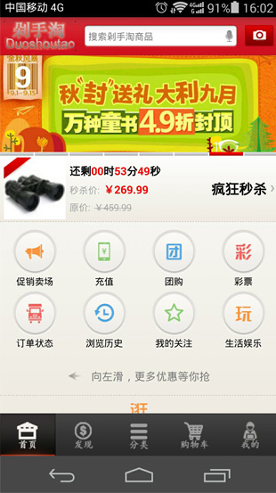 該軟件是 Android 平臺(tái)下的電子商務(wù)網(wǎng)站客戶端,是一個(gè)能夠?qū)崿F(xiàn)在線購(gòu)物的應(yīng)用程序,運(yùn)行這個(gè)程序可以實(shí)現(xiàn)網(wǎng)上登錄,注冊(cè),瀏覽商品,添加購(gòu)物車,對(duì)購(gòu)物車增刪查改,購(gòu)買商品等服務(wù),讓您的生活隨時(shí)隨地更方便。我們的app應(yīng)用名為"剁手淘",大體上分為以下9個(gè)模塊: