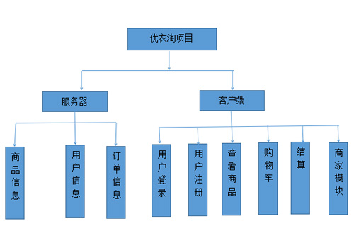 該軟件是 Android 平臺(tái)下的購(gòu)物網(wǎng)站客戶端,是一個(gè)能夠?qū)崿F(xiàn)購(gòu)買衣服的應(yīng)用程序,運(yùn)行這個(gè)程序可以實(shí)現(xiàn)用戶管理、商品查看、購(gòu)物車、購(gòu)買商品、訂單管理以及商家模塊等服務(wù),讓您的生活隨時(shí)隨地更方便。我們的app應(yīng)用名為"優(yōu)衣淘",大體上分為以下9個(gè)模塊: