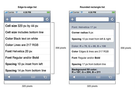 使用列表展示iPhone網(wǎng)絡(luò)應(yīng)用中的數(shù)據(jù)。iOS用戶習(xí)慣了內(nèi)置程序的列表,所以當(dāng)在web程序中看到列表時(shí),他們更有可能將web內(nèi)容視作程序。在iPhone上,表單展示在圓角矩形里,或者邊貼邊。每種樣式都有不同的韻律。