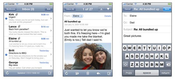 Mail是iPhone的首要內(nèi)置程序之一。用戶喜歡它在一屏屏上簡(jiǎn)潔地組織大量信息的方式。