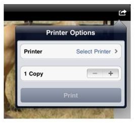 通常,用戶在打印的時候會按標(biāo)準(zhǔn)的打印按鈕。接下來,用戶可以選擇打印機(jī),設(shè)置打印屬性,按下打印鍵后開始打印。在iPhone上,這個視圖以操作列表的方式從屏幕下方出現(xiàn);在iPad上,操作區(qū)會出現(xiàn)在指向打印按鈕的浮出層里。