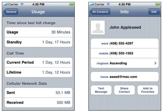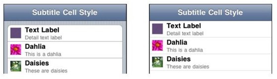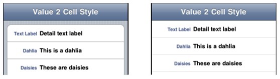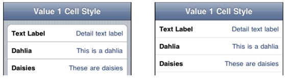 Value1和Value2的表格很適用于分組型。雖然幾種表格樣式你可以隨便用,但value1和value2與分組型表格搭配。例如,“設(shè)置”用了value1,iPhone版Contacts用了value2。