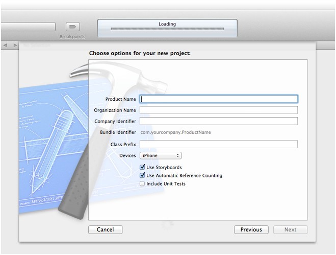 7. 確定選取“Use Storyboard”和“Use Automatic Reference Counting”選項(xiàng),但不選定“Include Unit Tests”選項(xiàng)。
