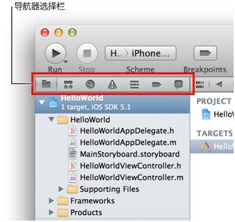 項目導(dǎo)航器顯示項目中的所有文件。如果項目導(dǎo)航器未打開,請點(diǎn)按導(dǎo)航器選擇欄左邊的按鈕: