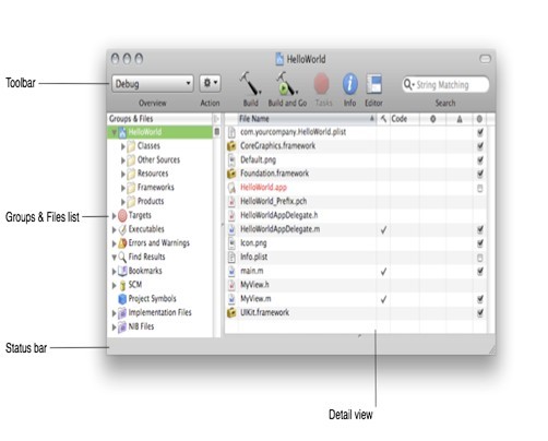 圖1 一個(gè)Xcode項(xiàng)目窗口