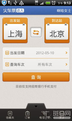 《火車票達人》雖然支持網(wǎng)絡(luò)購票功能,但目前僅支持使用招商銀行進行付款,不過用戶可以選擇在電腦網(wǎng)頁端去完成付款流程,這一點還算比較不錯。12306官網(wǎng)每年的崩潰頻率是非常高的,《火車票達人》還支持自動重新登錄功能,這對喜歡網(wǎng)絡(luò)購票的朋友們來說再合適不過了。