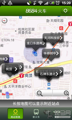 這款應(yīng)用還支持使用LBS服務(wù)來為用戶帶來方便,利用GPS定位功能,顯示附近公交車站準確位置,異地轉(zhuǎn)乘公交從此不再困難。