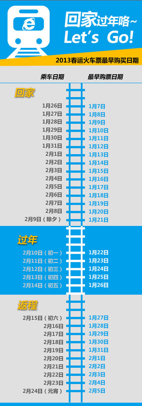 附:2013春運火車購票時間表