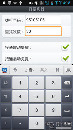 在電話預(yù)定功能上,《火車票達人》同樣擁有自動重撥功能,可以設(shè)定次數(shù)以及接通后的提醒方式,用起來感覺很不錯。