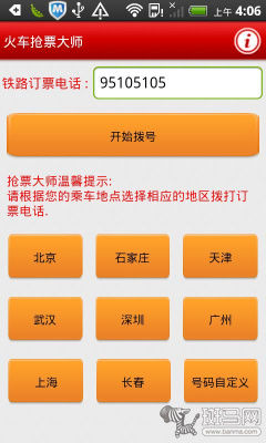 上榜理由:《搶票大師》是一款非常簡單的電話搶票應(yīng)用,不過它的功能并不比前幾款應(yīng)用表現(xiàn)好,僅支持無限重撥,沒有提醒方面的功能設(shè)置,這一點十分遺憾。