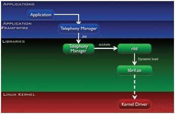 在原生守護(hù)進(jìn)程調(diào)用模式中,調(diào)用的原生服務(wù)通常是后臺(tái)的守護(hù)進(jìn)程,在這種模式中,上層應(yīng)用會(huì)首先通過(guò)Java JNI和應(yīng)用本身的原生接口通信,然后通過(guò)套接字或者IPC和守護(hù)進(jìn)程通信。如圖1-4所示為通話應(yīng)用的調(diào)用層次關(guān)系。