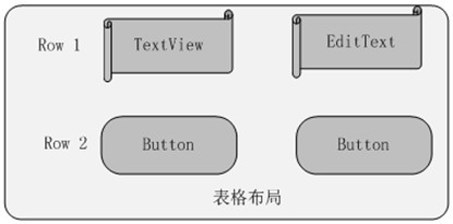 TableLayout 布局中并不會為每一行、每一列或每個單元格繪制邊框,每一行可以有0 或多個單元格,每個單元格為一個View 對象。TableLayout 中可以有空的單元格,單元格也可以像HTML 中那樣跨越多個列。圖-1是表格布局的示意圖。
