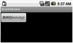 IntentDemo示例中包含IntentDemo和Activity2這兩個Activity類,程序啟動是默認(rèn)啟動IntentDemo這個Activity,啟動畫面如圖1所示。