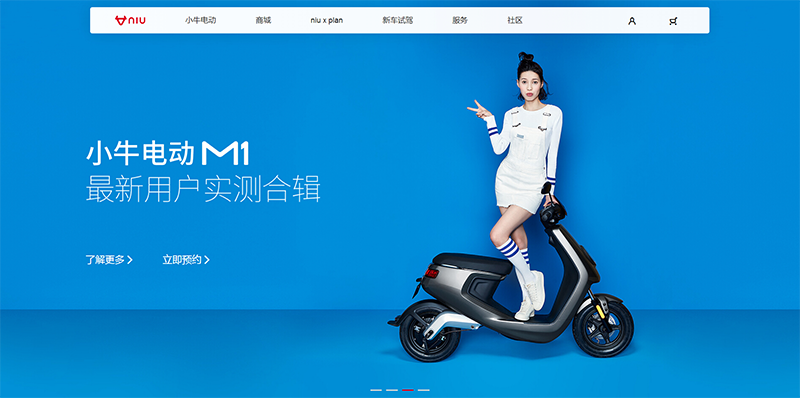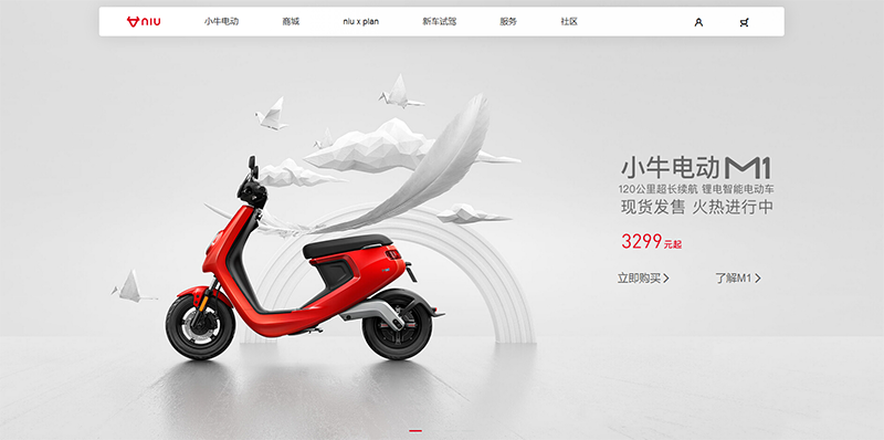 耐克和小牛電動(dòng)車(chē)的頁(yè)面設(shè)計(jì)的顏色選擇都是使用了這個(gè)方法,并且小牛為是讓畫(huà)面不單調(diào),背景使用了素色黑白灰的一些圖形元素,這樣既讓畫(huà)面豐富起來(lái)又不會(huì)使顏色過(guò)多而顯得雜亂。