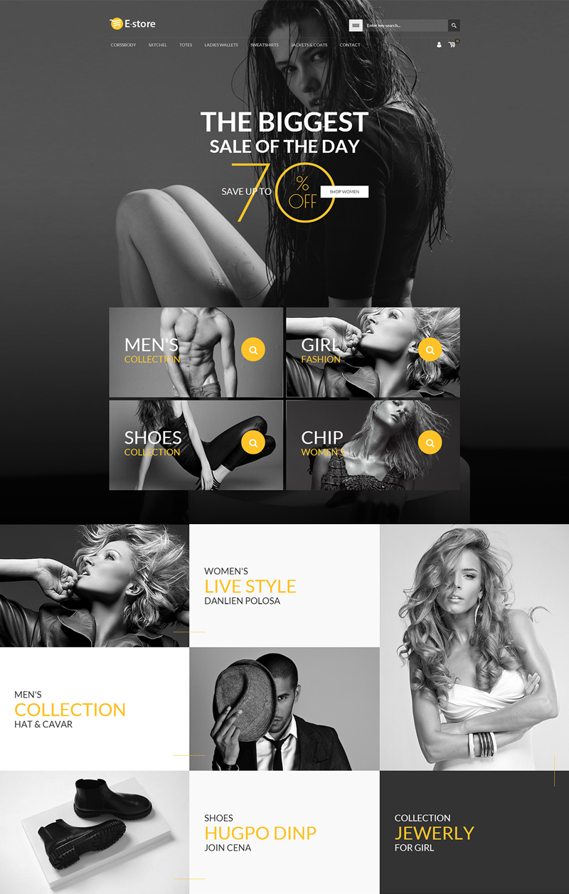 通過(guò)提取出的顏色我們可以看到,上面的頁(yè)面設(shè)計(jì)中采用了黑白灰做為主色調(diào),使用亮黃色為輔色,雖然亮黃色為輔色,但是人們第一眼往往會(huì)注意亮黃色,而設(shè)計(jì)師把70%off的折扣信息的字體顏色選為亮黃色也是對(duì)折扣信息的強(qiáng)調(diào)。