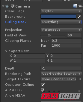 相機(jī)在渲染順序上的位置。具有較低深度的相機(jī)將在較高深度的相機(jī)之前渲染。