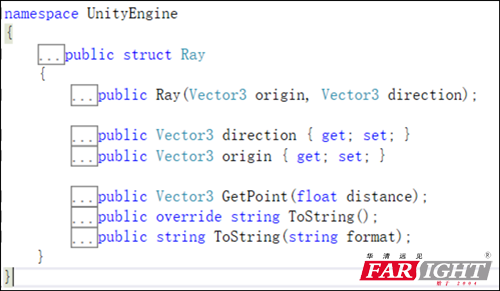 Ray是一個結構體(Struct),下面將對Ray射線類相關的方法和屬性進行講解。