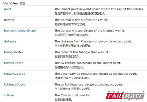 通過transform參數(shù),就可以控制碰撞體的移動、旋轉、伸縮比例,還可以獲得碰撞體游戲對象,如:hit.transform.gameObject。