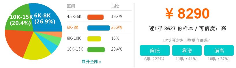 備注:南京前端開發(fā)工程師平均工資:¥ 8290/月,取自 3627 份樣本,較 2016 年,增長 3%。